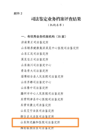 近日,山东省司法厅组织开展司法鉴定案卷质量集中评查活动,阳光融和医院司法鉴定所以专业严谨的执业水准、规范完备的案卷管理,从众多机构中脱颖而出,同时荣获“优秀司法鉴定意见书机构”“优秀业务档案机构”两项省级荣誉,实现“双优秀”佳绩!