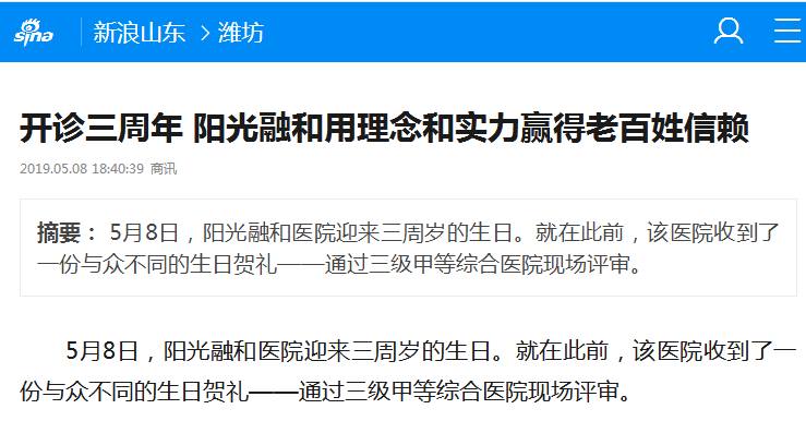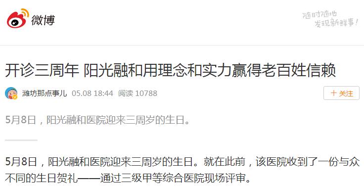 微博(潍坊那点事儿): 开诊三周年 阳光融和用理念和实力赢得老百姓信赖