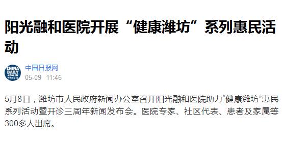中国日报网:阳光融和医院开展“健康潍坊”系列惠民活动