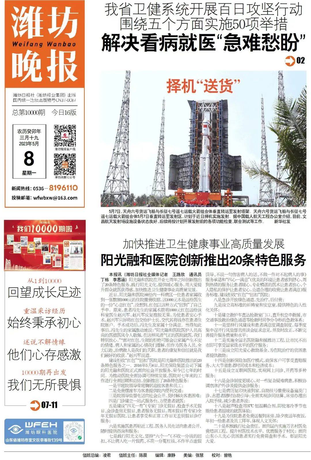 潍坊日报头版报道:加快推进卫生健康事业高质量发展!阳光融和医院创新推出20条特色服务