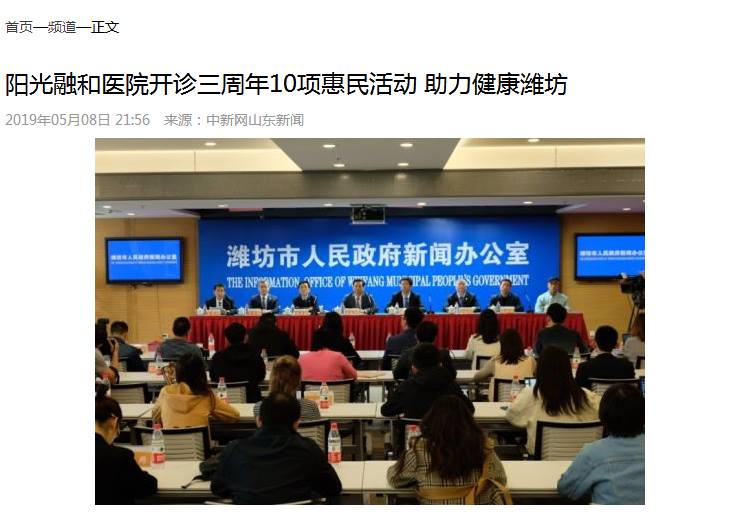 大众网 :潍坊市人民政府新闻办公室隆重召开阳光融和医院助力“健康潍坊”惠民系列活动暨开诊三周年新闻发布会