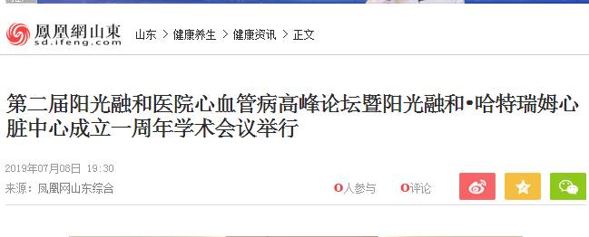 凤凰网:第二届阳光融和医院心血管病高峰论坛暨阳光融和•哈特瑞姆心脏中心成立一周年学术会议举行