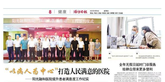 潍坊日报专题报道:阳光融和医院提升患者满意度工作纪实
