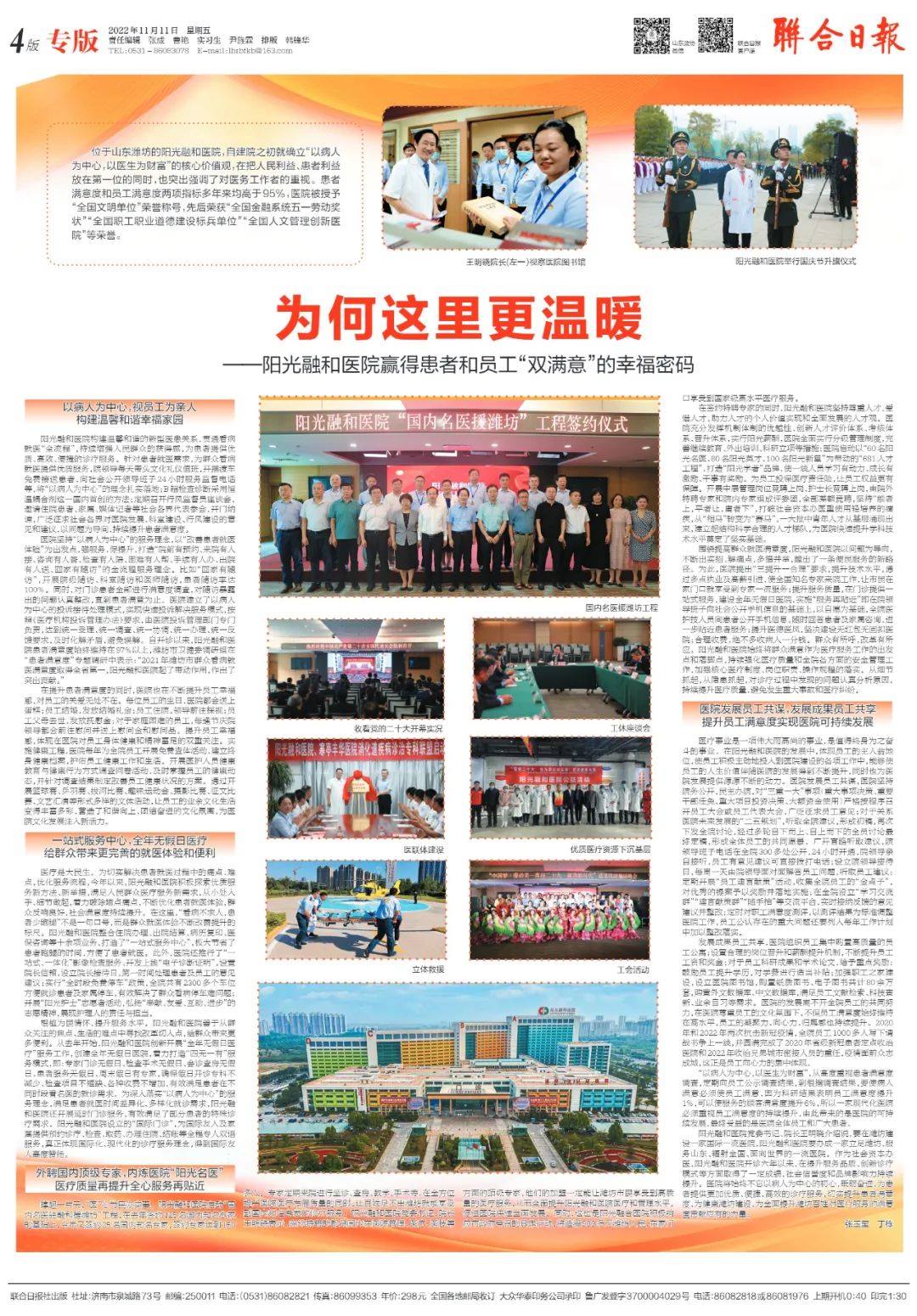 联合日报专题报道:为何这里更温暖 ——阳光融和医院赢得患者和员工“双满意”的幸福密码