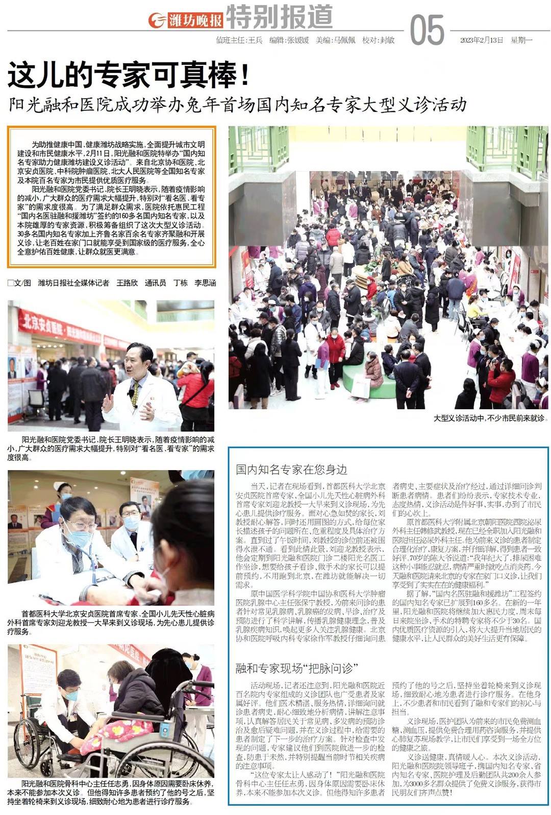《潍坊晚报》整版报道阳光融和医院先进手术,防疫救治两不误